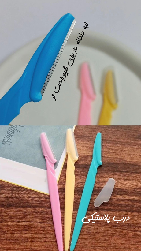در هر بسته ۳ عدد تیغ کاملا بهداشتی با لبه دندانه دار و درب پلاستیکی موجود