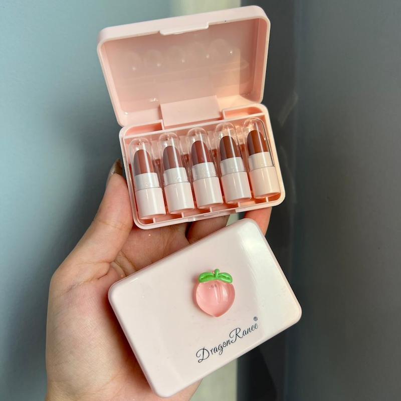 کیوت ترین و گوگولی ترین رژ لب که تا حالا داشتی 🥹🍑 پک رژ لب ۵ تایی برند دراگون با بافت نرم و کاملا مخملی اصلا پوسته نمیکنه رنگهای نود و کاربردی به خاطر بسته بندی زیبایی که داره میتونید به عنوان هدیه دادن هم استفاده کنید 🥰🌸🍑